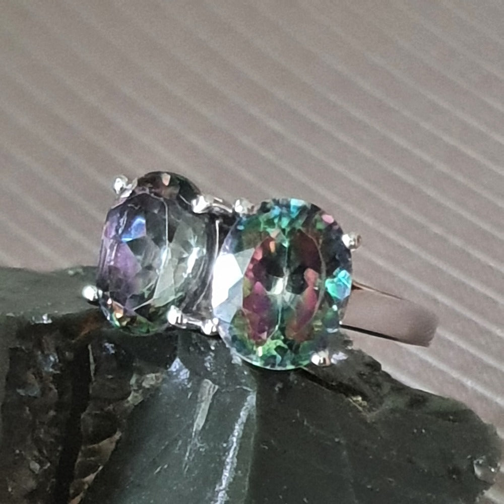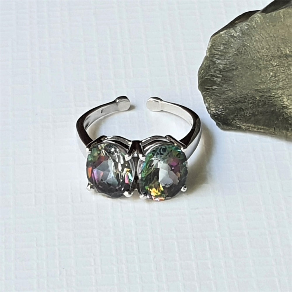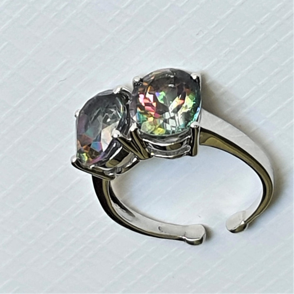 This mystical adjustable Finger Ring, made of the captivating Mystic Topaz Stone, will look stunning on your finger, resembling an encapsulation of the Aurora lights in its beautifully cut facets. Its enchanting play of colors is a mesmerizing spectacle that adds a touch of otherworldly charm to your style.