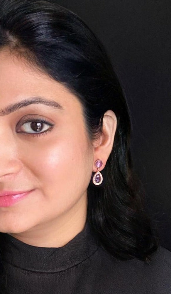 These beautiful earrings, made of Amethyst and White Topaz, bring in a mesmerizing purple hue and loads of bling. The dazzling combination of colors and sparkle creates a captivating contrast that makes them a true head turner. Adorn yourself with this exquisite pair, and let their enchanting beauty be the center of attention wherever you go.