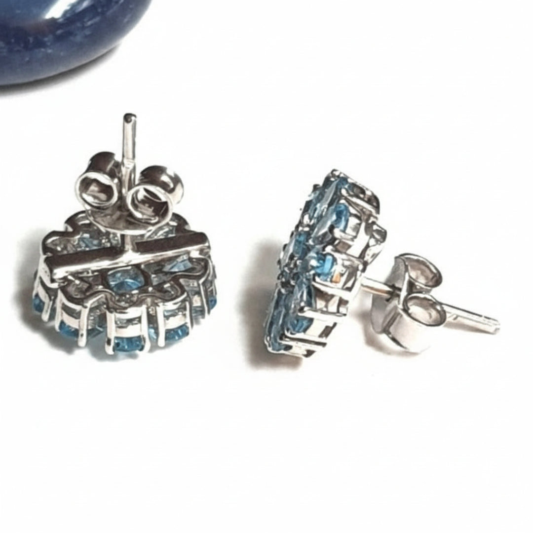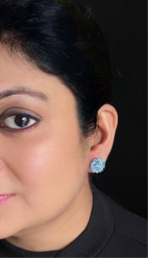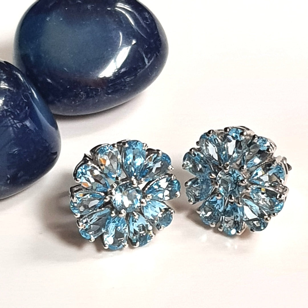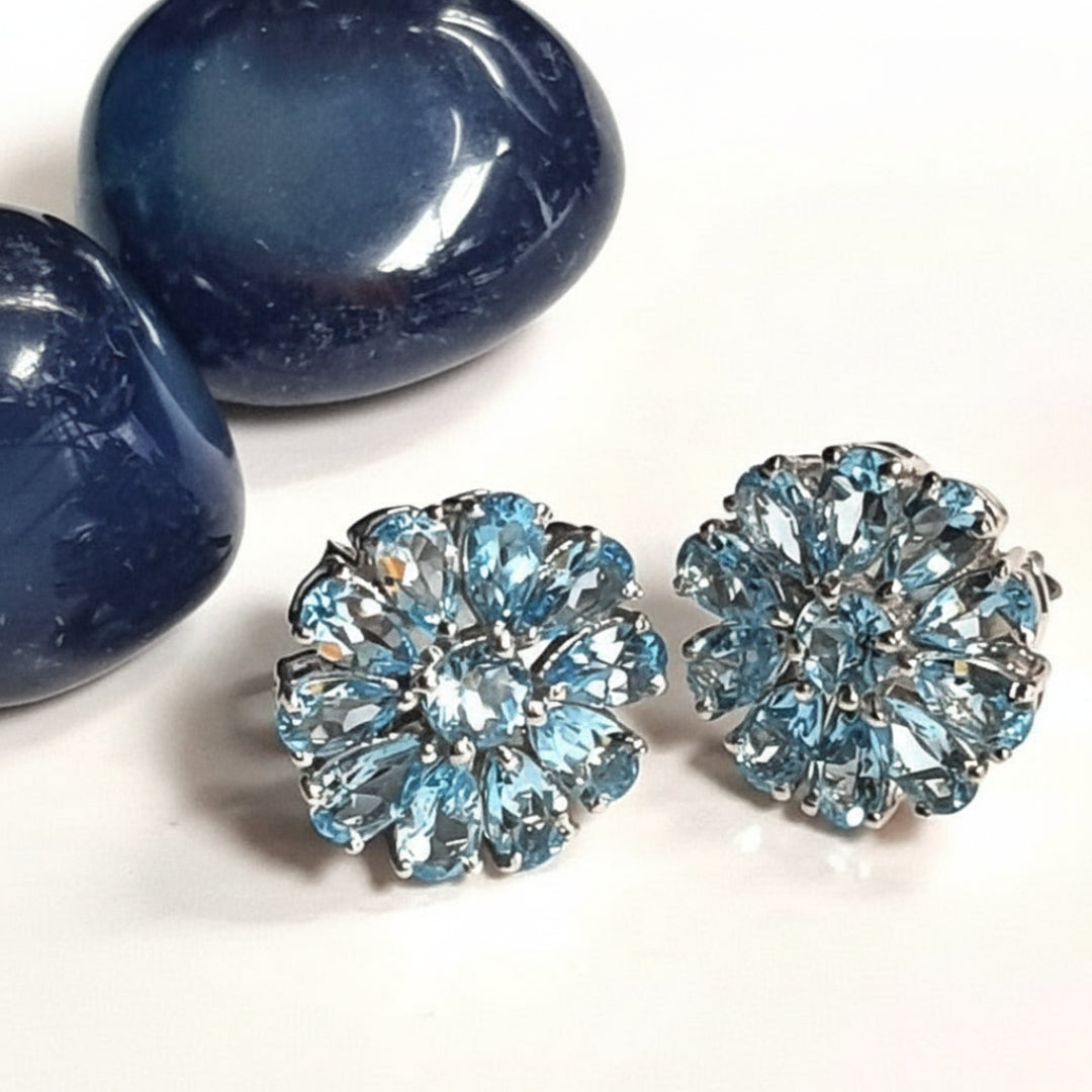 With each stone cut into the shape of a beautiful petal, this pair of earrings radiates a beautiful light. Adorn these and become 'The Lady with the Blue Flowers'.