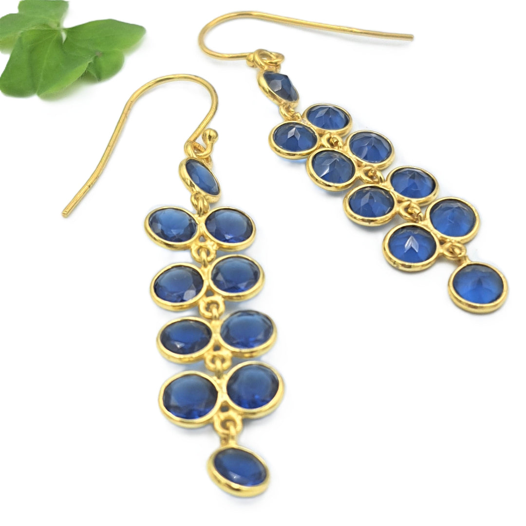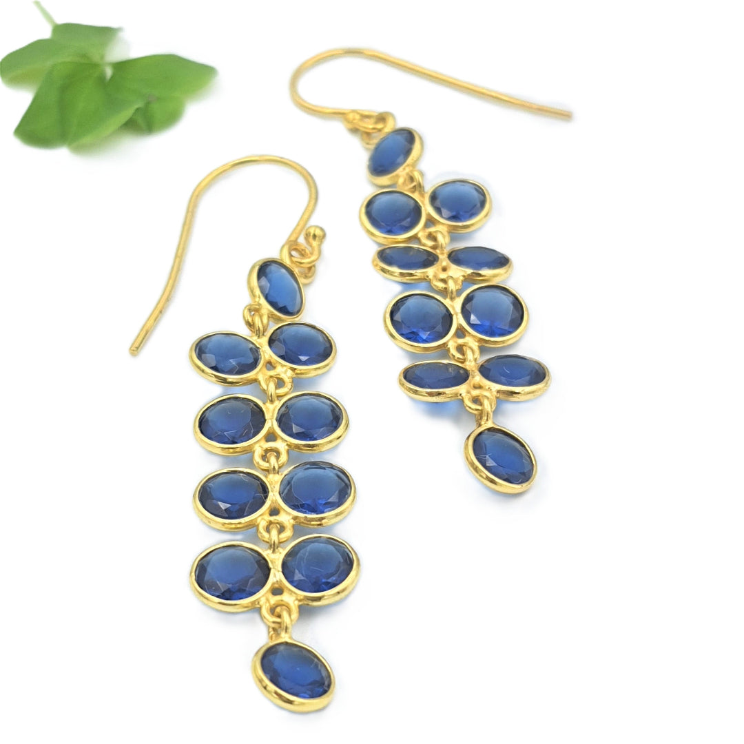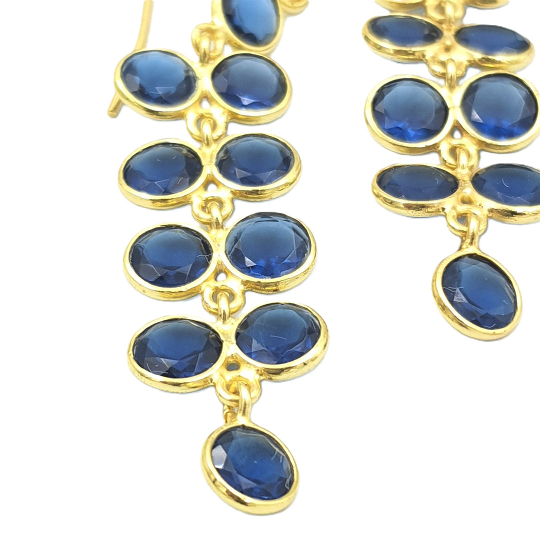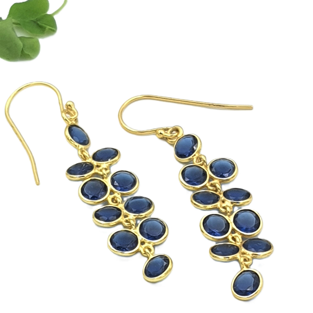 These elegant earrings, made of Cultured Blue Corundum Stones and delicately finished in Yellow Gold plating, artfully encapsulate the delicate charm of Blue Wisteria flowers. With every wear, let the intricate design and vibrant blue hues transport you to a serene garden in full bloom, adding a touch of natural elegance to your ensemble. Adorn yourself with this exquisite pair, and carry the essence of blooming beauty wherever you go.