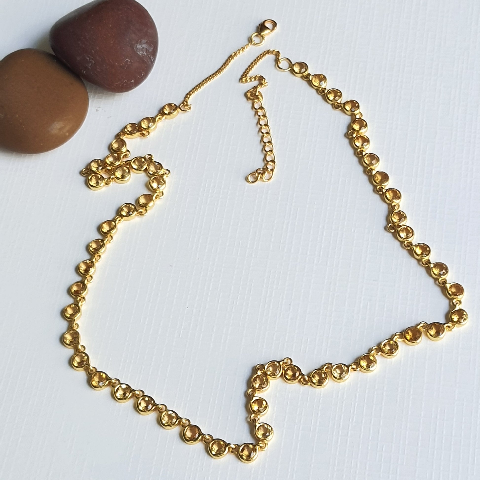 Radiate vitality and embrace the essence of the sun with our simply elegant Citrine Stone Necklace. Symbolizing energy and positivity, the Citrine stones in this necklace capture the vibrant spirit of the sun. Adorn yourself with this exquisite piece and showcase your vibrant personality with panache, making a bold statement wherever you go.