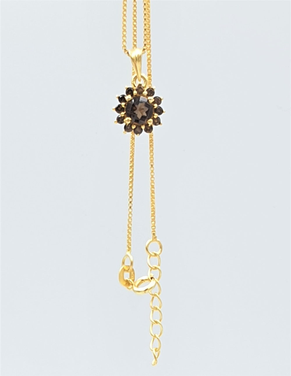 Immerse yourself in the captivating beauty of nature with our charming Smoky Quartz (Smoky Topaz) Pendant, elegantly suspended from a gold-plated sterling silver chain. Inspired by the enchanting charm of a blooming flower, this pendant embodies the essence of nature, bringing its magnificence closer to your heart. Embrace the harmonious fusion of exquisite gemstone and craftsmanship, making this piece a cherished symbol of your connection to the natural world.
