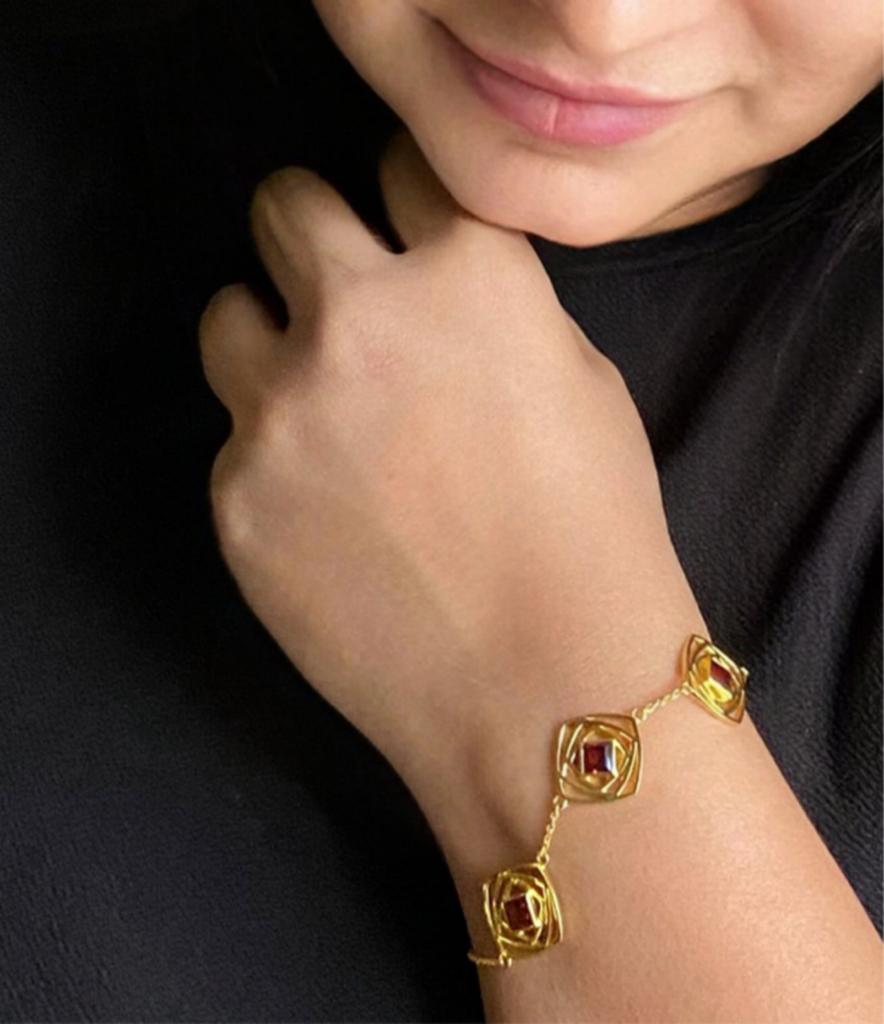This beautiful bracelet made of Garnet stones adds a quaint quirkiness to your attire.