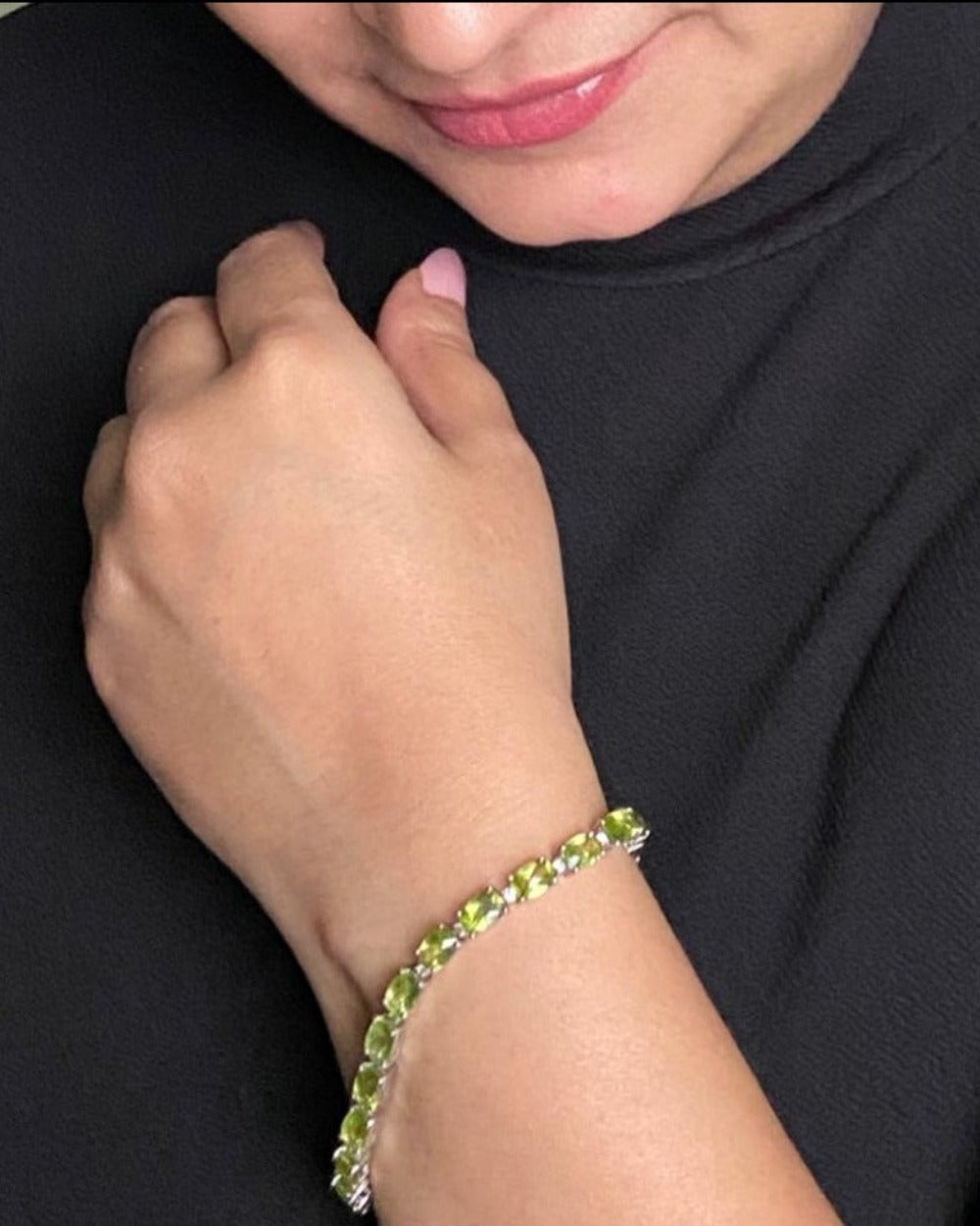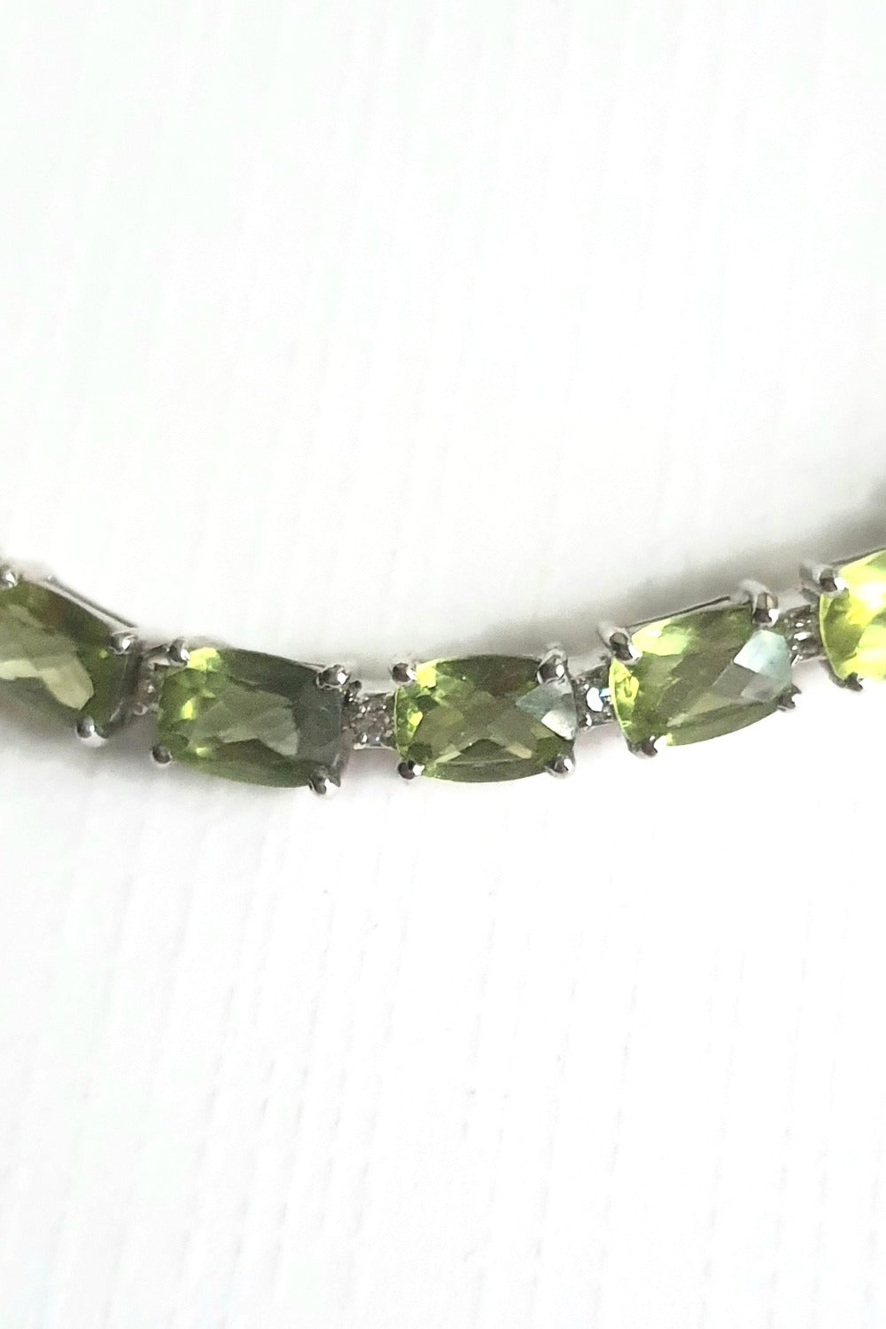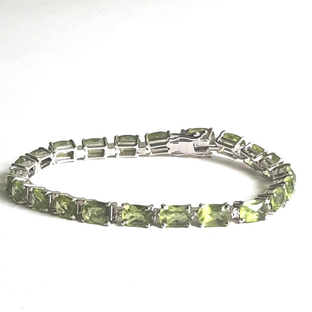This beautiful bracelet made of Peridot and Cubic Zirconia Stone would shine on your wrist like the interplay between light and the leaves when sunlight shines through the trees.
