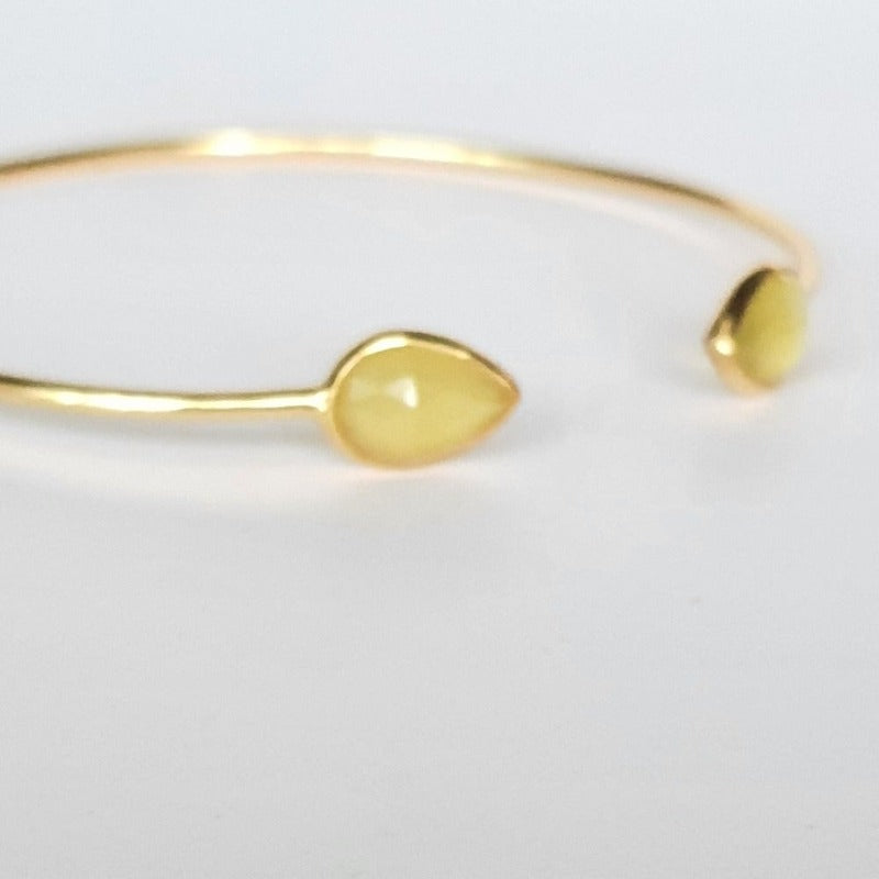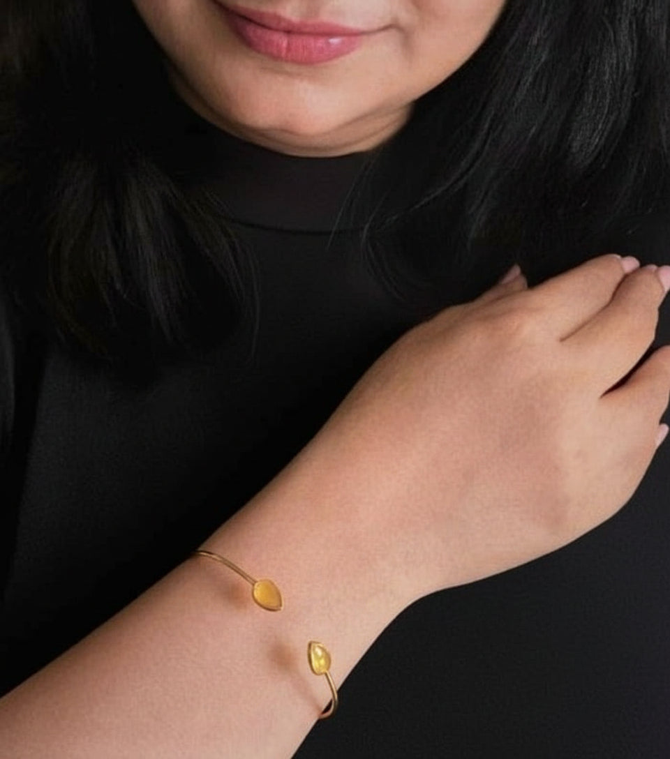 This elegant cuff made of Yellow Chalcedony stone is a mark of thoughtful craftsmanship. This piece of jewellery makes for an excellent style statement both for work and leisure.