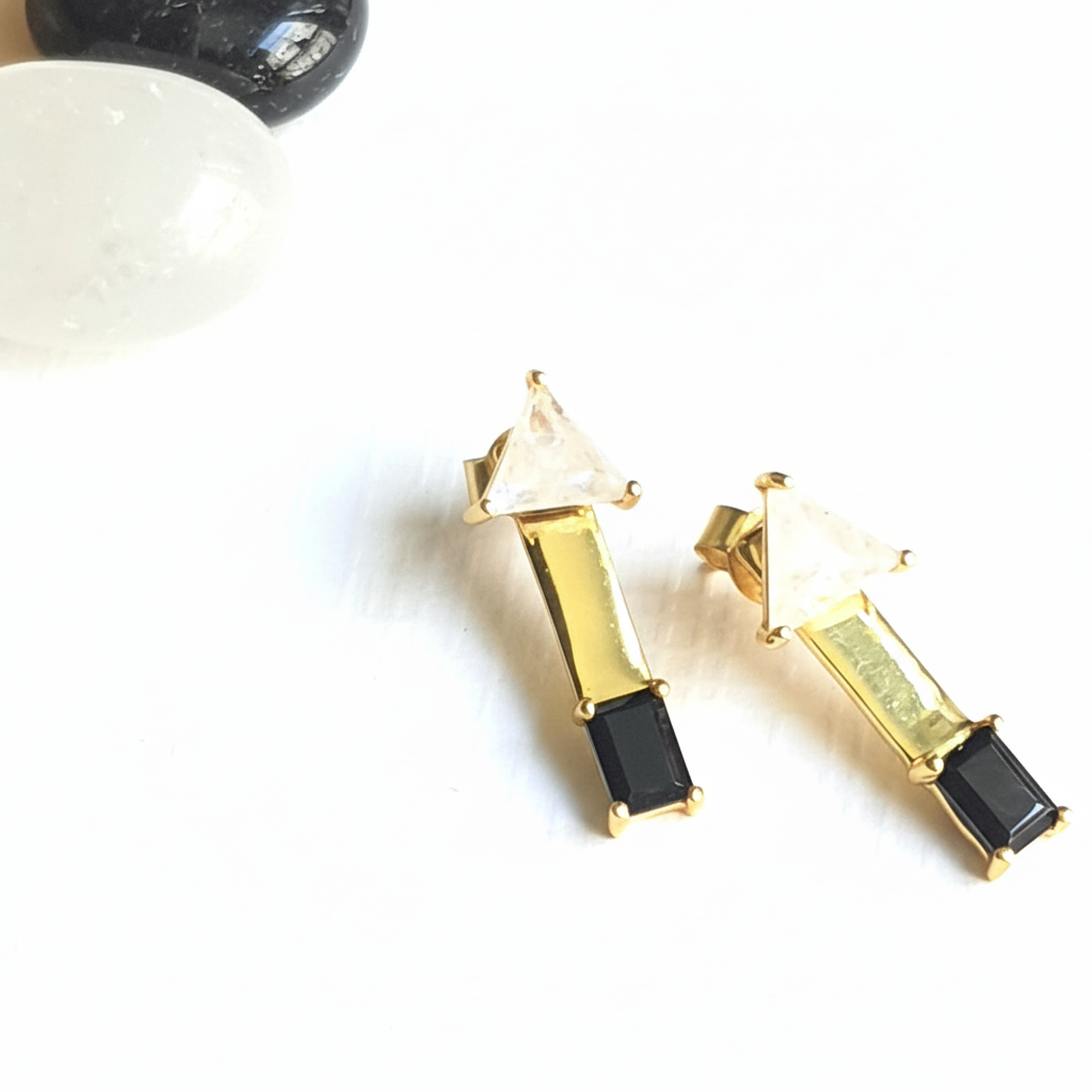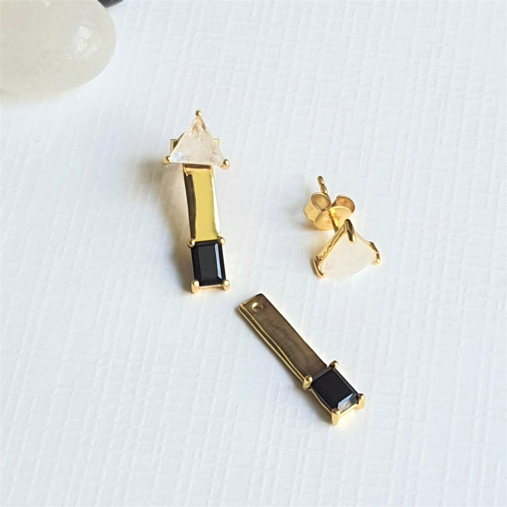 These earrings made of Moonstone and Black Onyx stone present to you a unique design which can be worn in two ways depending upon your mood. So go ahead and Carpe diem and nox.