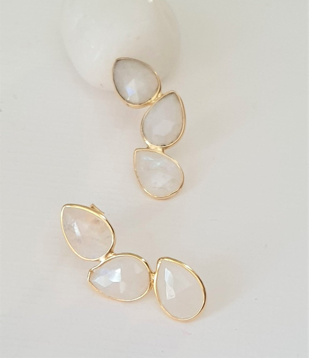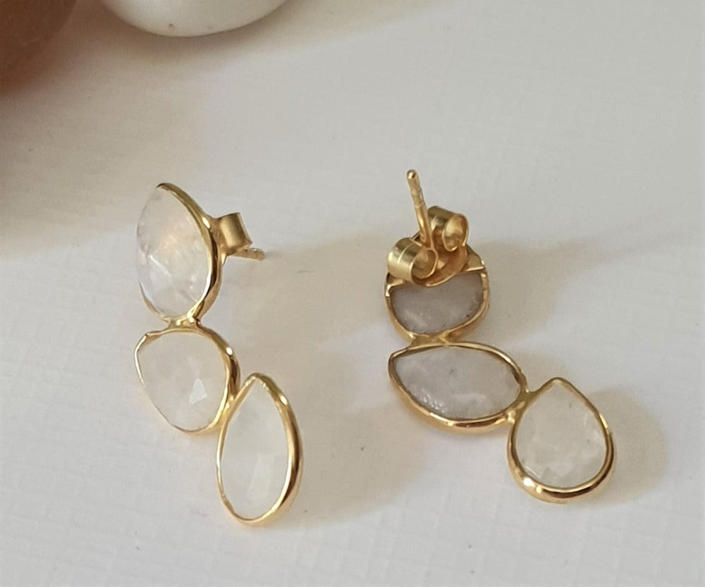These elegant earrings made of Moonstone and finished in yellow gold plating would adorn your ears like a sun kissed moon.