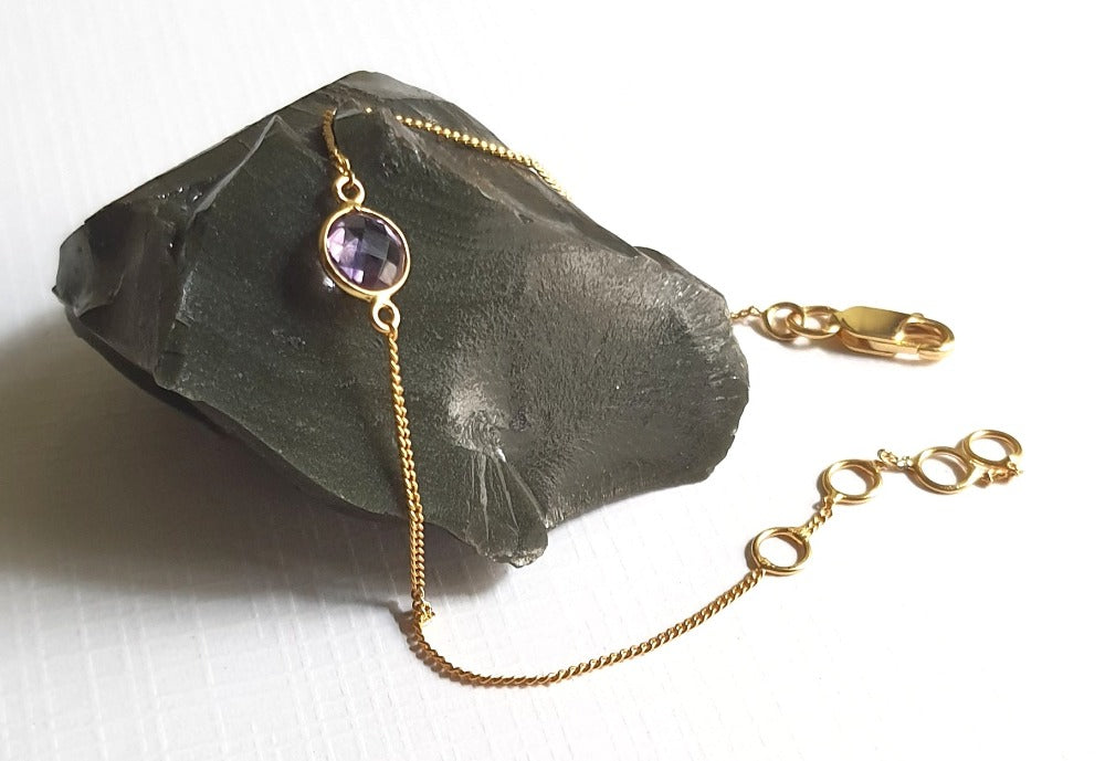 This bracelet made of Amethyst stone is an elegant design and craftsmanship providing you with an exquisitely styled piece and your piece of the moon.