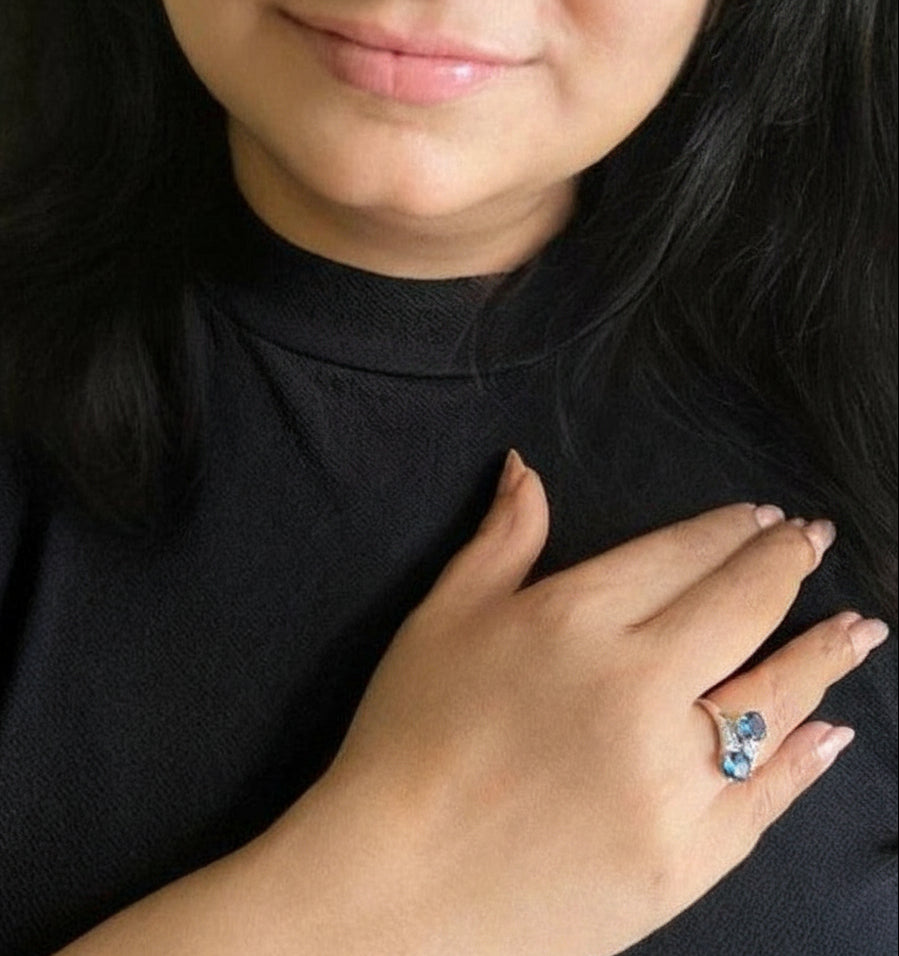 Inspired by the celestial elegance of the blue-white star Rigel, this ring boasts a captivating design adorned with the alluring hues of London Blue Topaz and the brilliant sparkle of Cubic Zirconia stones. Let this exquisite piece be a reminder of the boundless beauty that graces both the heavens and your hand. Adorn yourself with this celestial-inspired creation, and carry a touch of starlit allure wherever you go.