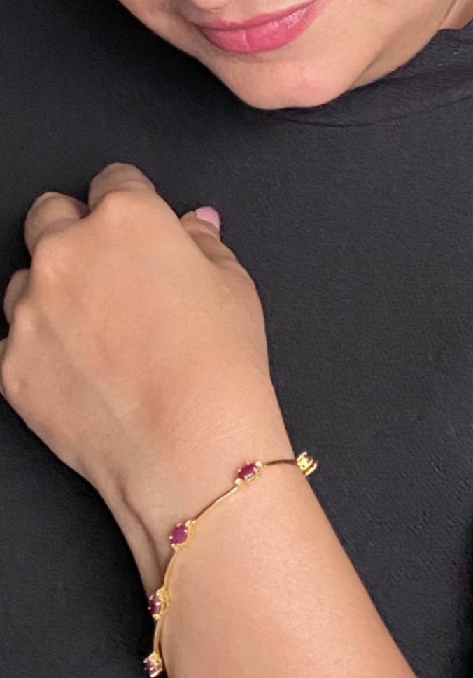 This exquisite bracelet made of Ruby and White Topaz stones beckons your romantic side. Adorn this and get romantic with the very beautiful You.