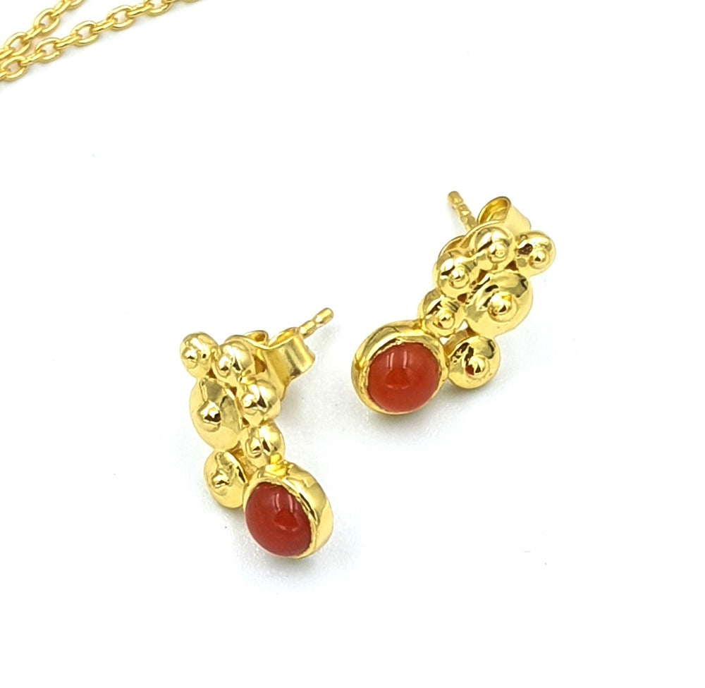 Elevate your style with our exquisite jewelry set, featuring alluring Red Onyx earrings and a necklace. Meticulously crafted, these pieces showcase Red Onyx's deep, rich hue, resembling the fiery embers of passion. Embrace the timeless elegance of these natural gemstones and adorn yourself with this captivating jewelry ensemble.