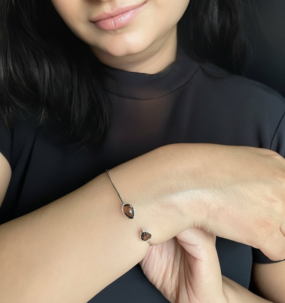 This elegant cuff made of Smoky Topaz stone is a mark of thoughtful craftsmanship. This piece of jewellery makes for an excellent style statement both for work and leisure.