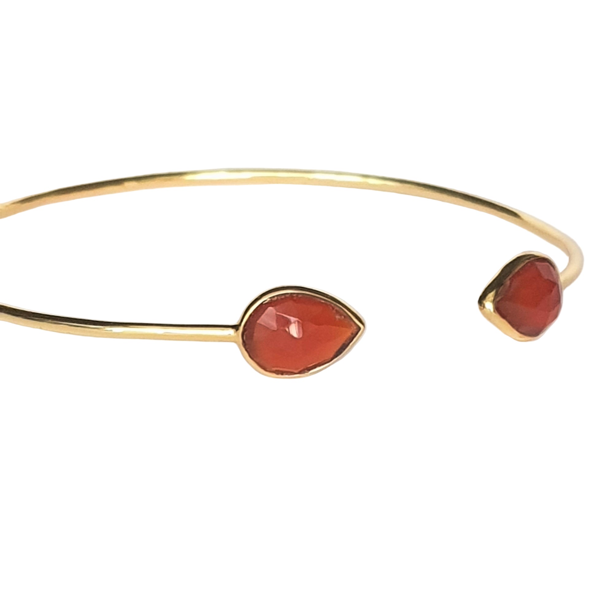 This elegant cuff made of Orange Onyx stone is a mark of thoughtful craftsmanship. This piece of jewellery makes for an excellent style statement both for work and leisure.