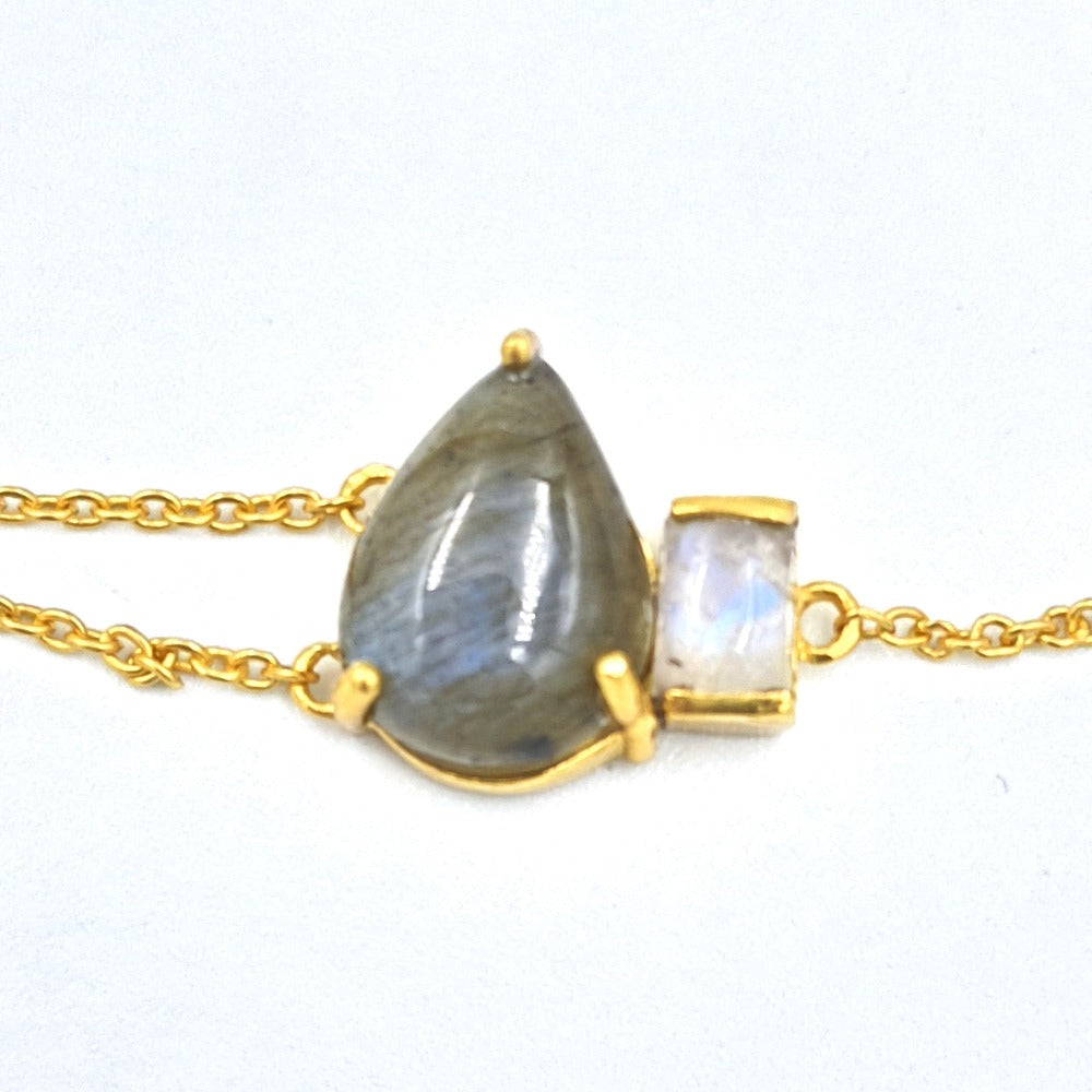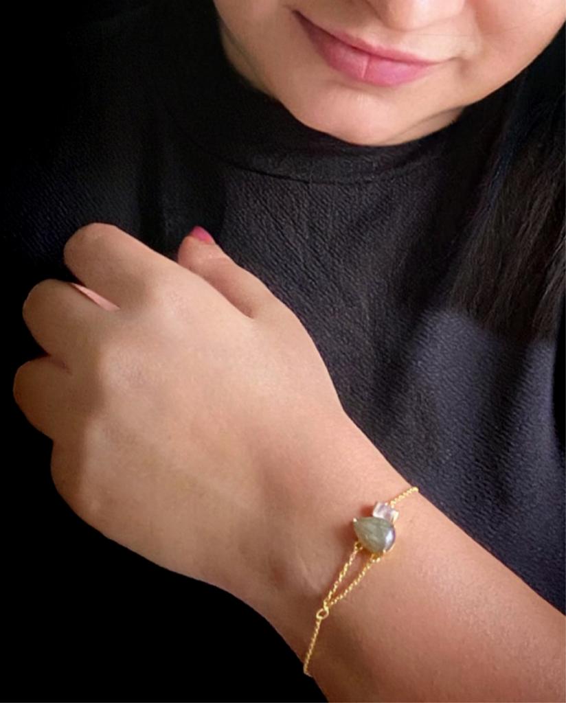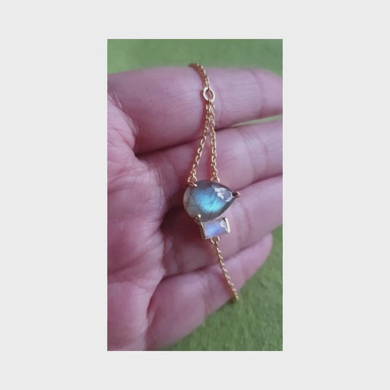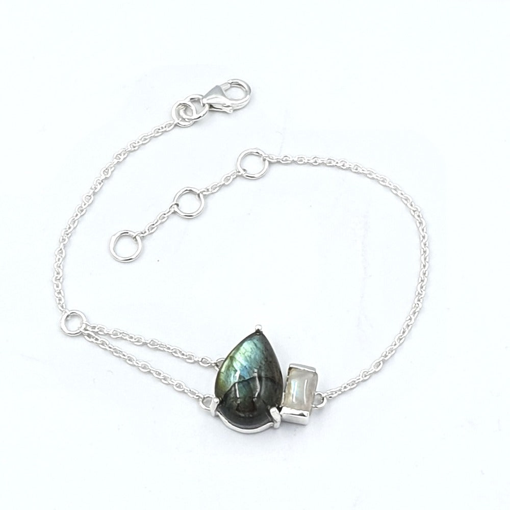 This elegant bracelet made of Labradorite and Moonstones is wonderful design encompassing beautiful geometry to bring out your chicness.