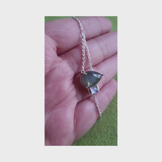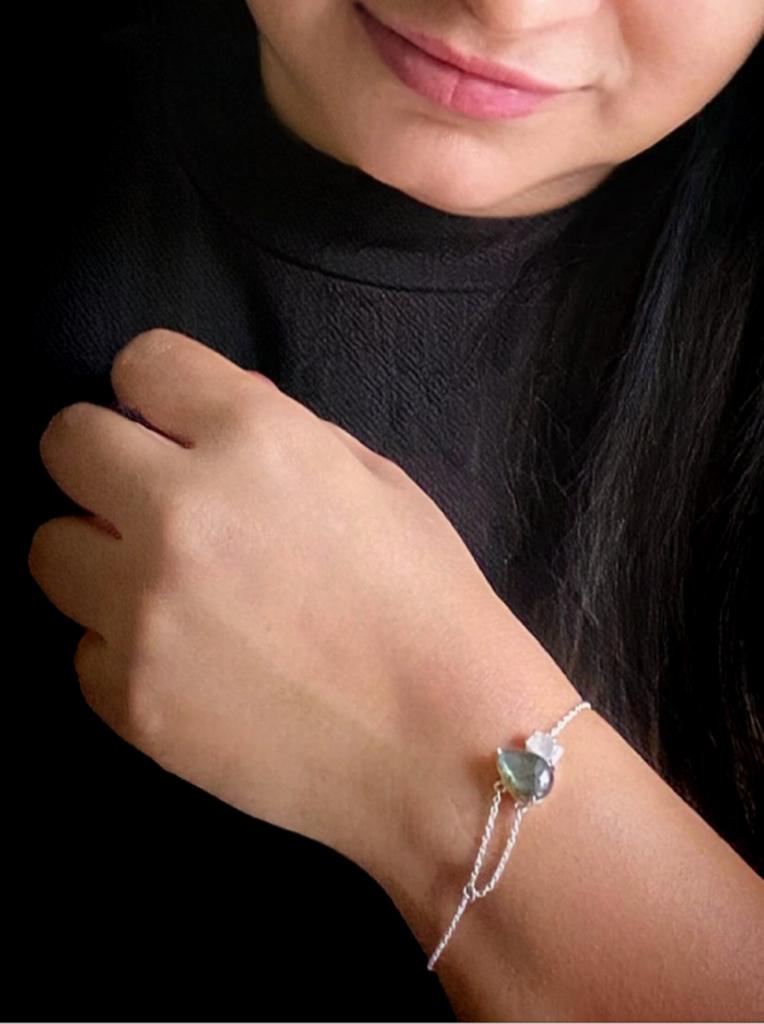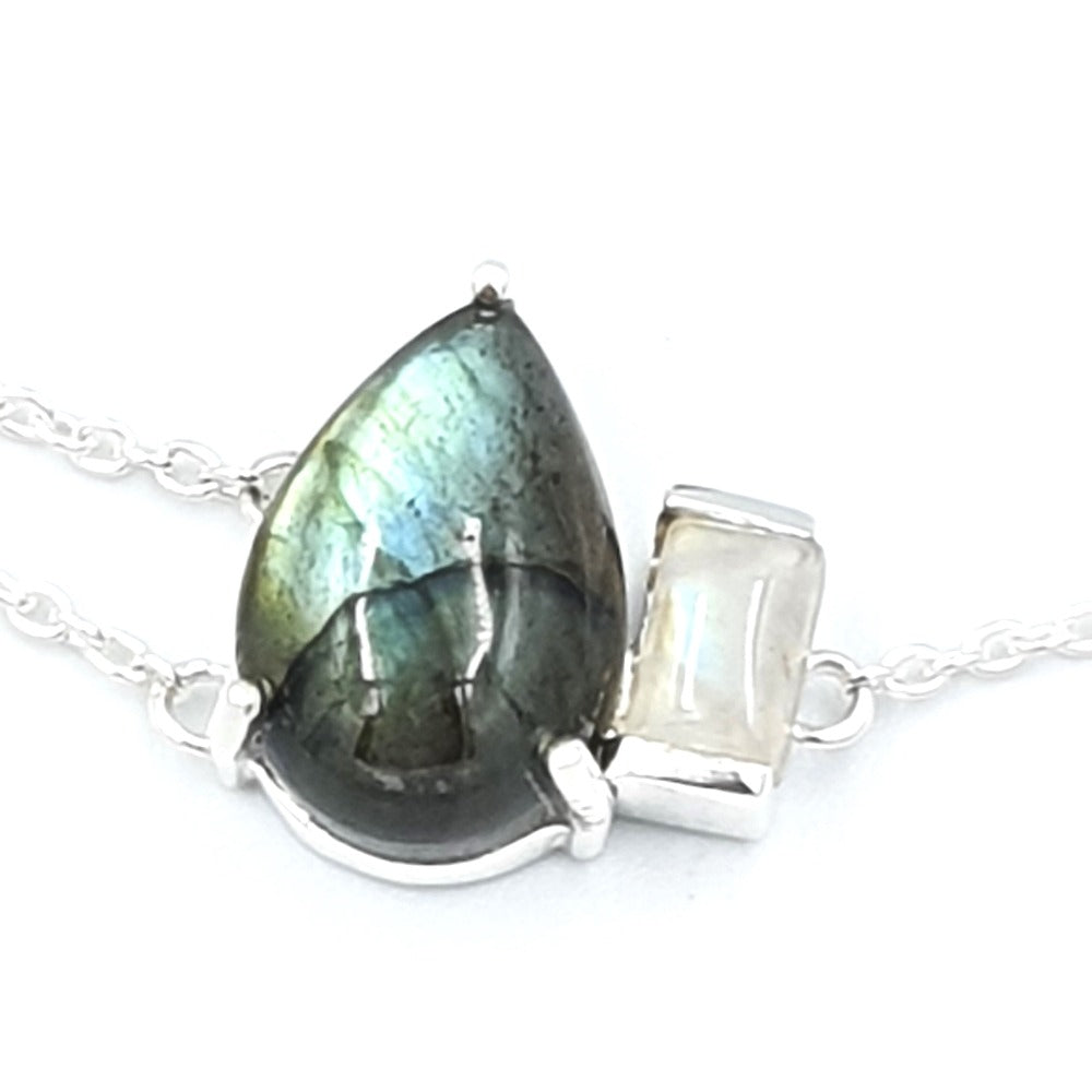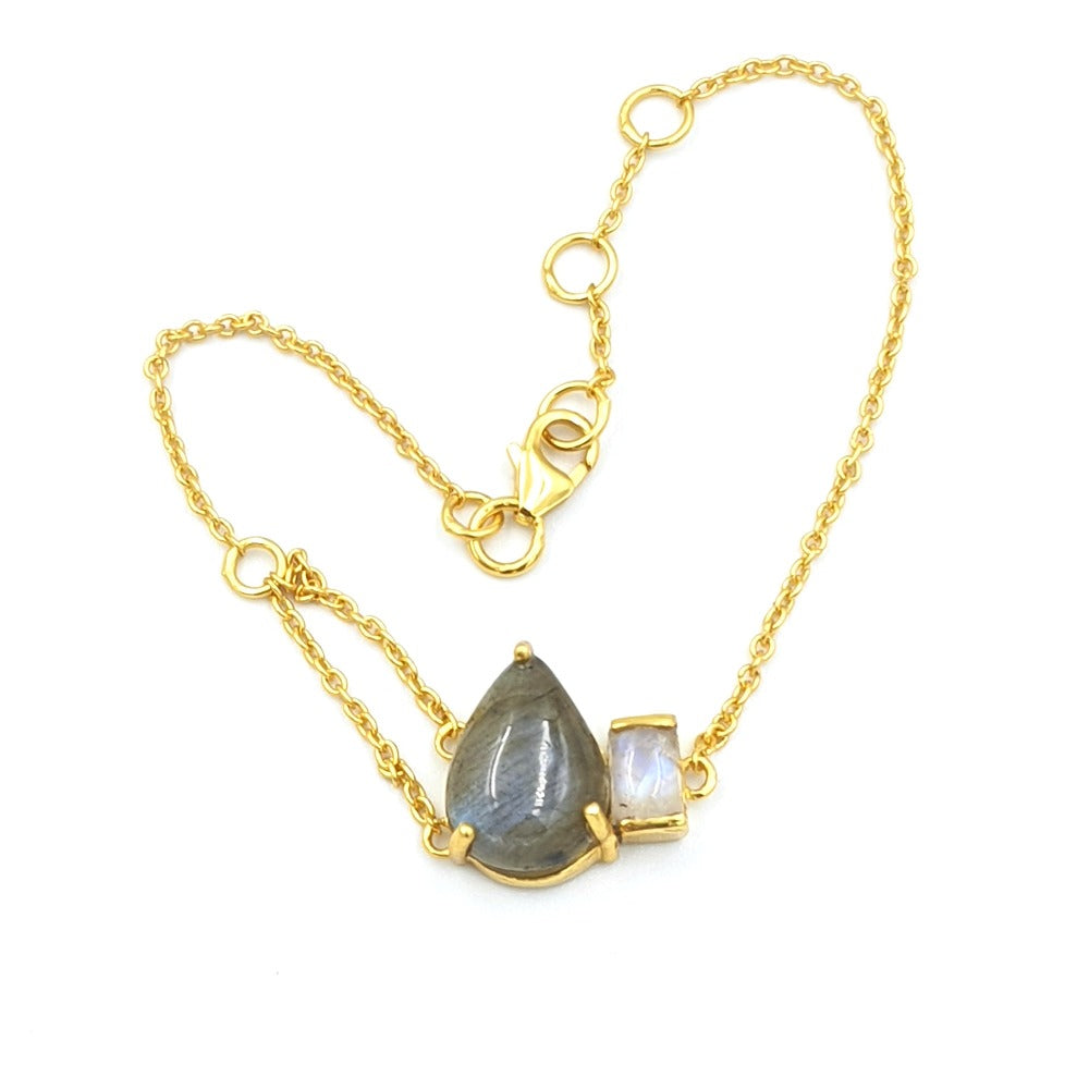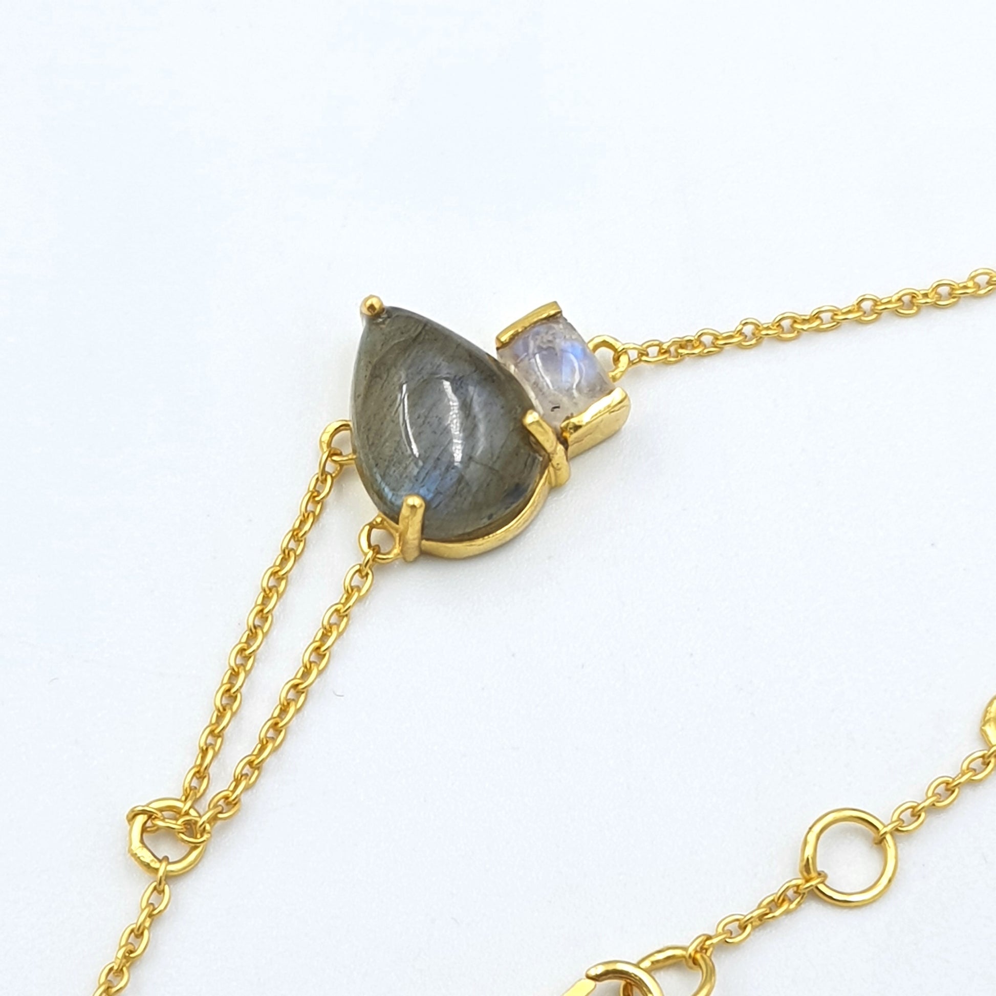 This elegant bracelet made of Labradorite and Moonstones is wonderful design encompassing beautiful geometry to bring out your chicness.