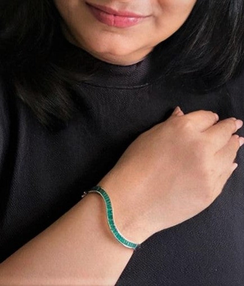 This wave shaped openable bangle is made of Green Onyx stone and is sure to get you drenched with appreciations.