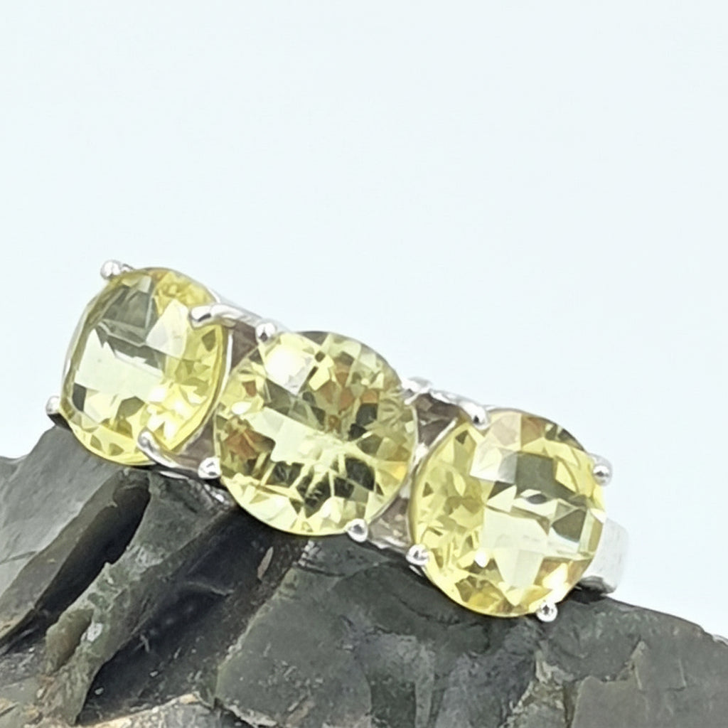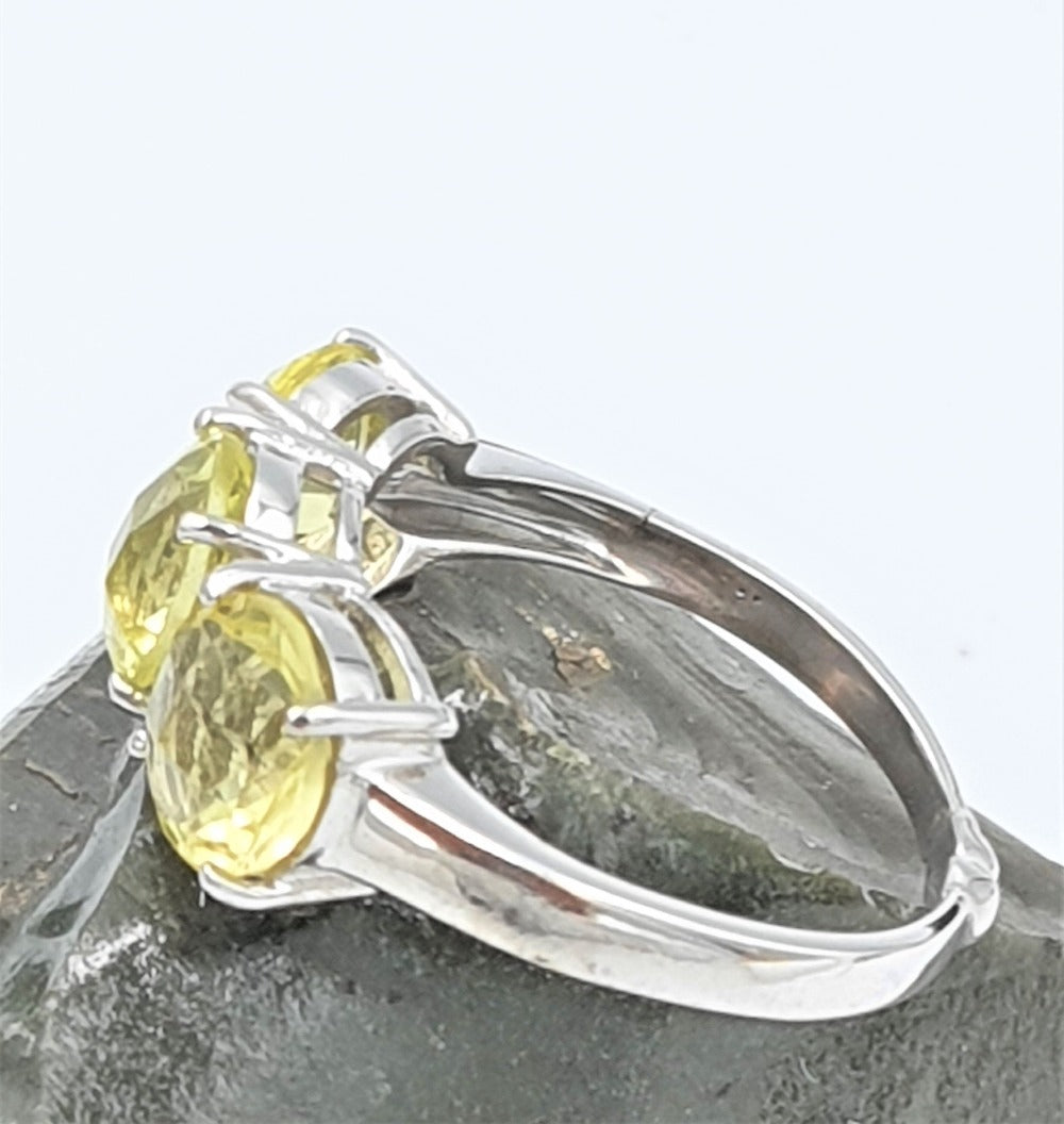Enhance your elegance with this exquisite adjustable Tri-stone finger ring, meticulously crafted with Lemon Topaz stones. The captivating design exudes a unique charm that is sure to captivate your heart and elevate your style. Adorn yourself with this enchanting piece, and let its timeless beauty become a cherished addition to your collection.