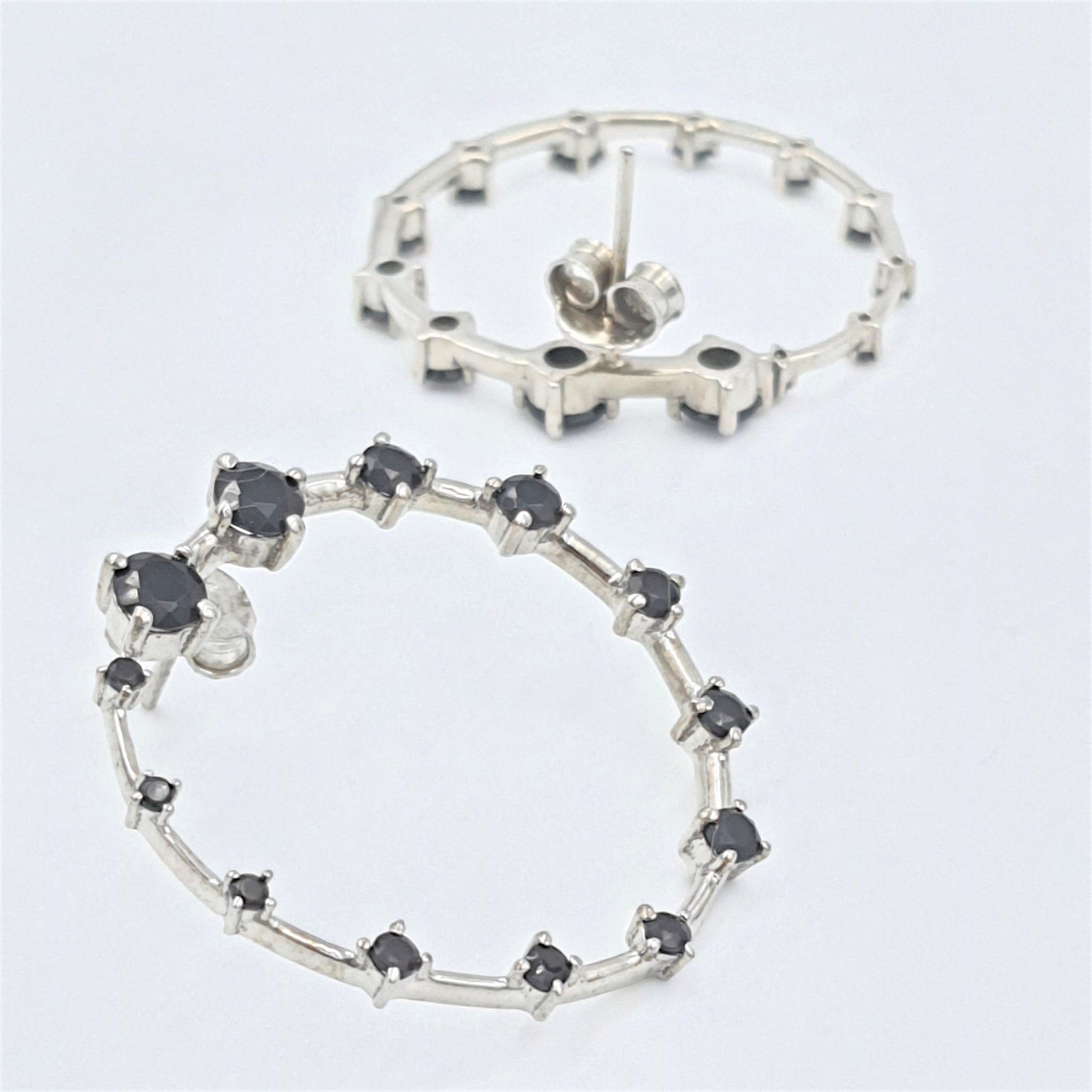These lightweight front-facing hoops, adorned with the captivating elegance of Black Onyx stone, present a refreshing and modern interpretation of the classic 'Hoop' culture. Embrace this unique blend of style and comfort as you adorn yourself with these exquisite earrings, adding a touch of contemporary charm to your ensemble.